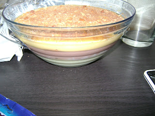 Retirar a forma do congelador, colocar o preparado das natas em cima e levar novamente ao congelador por volta de umas 2horas depois tirar e colocar no frigorifico e na hora de servir retirar o aro e colocar o doce de morango a cobrir todo o doce.